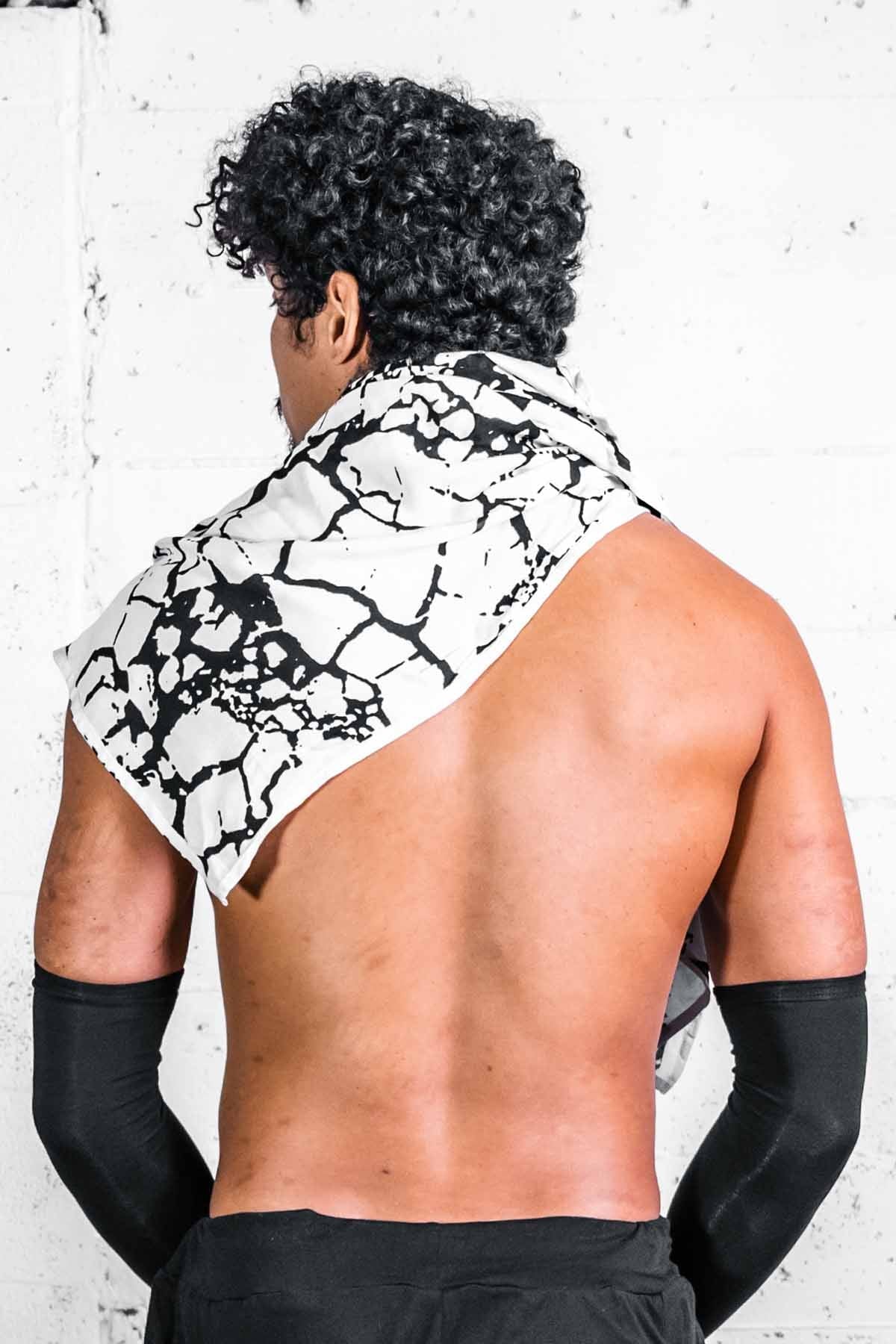 This extra large scarf can play many roles in every day. Utilize its size and softness as a shawl, cape, scarf, hood, blanket, skirt, or wrap. Playa print with bike tire tred marks.