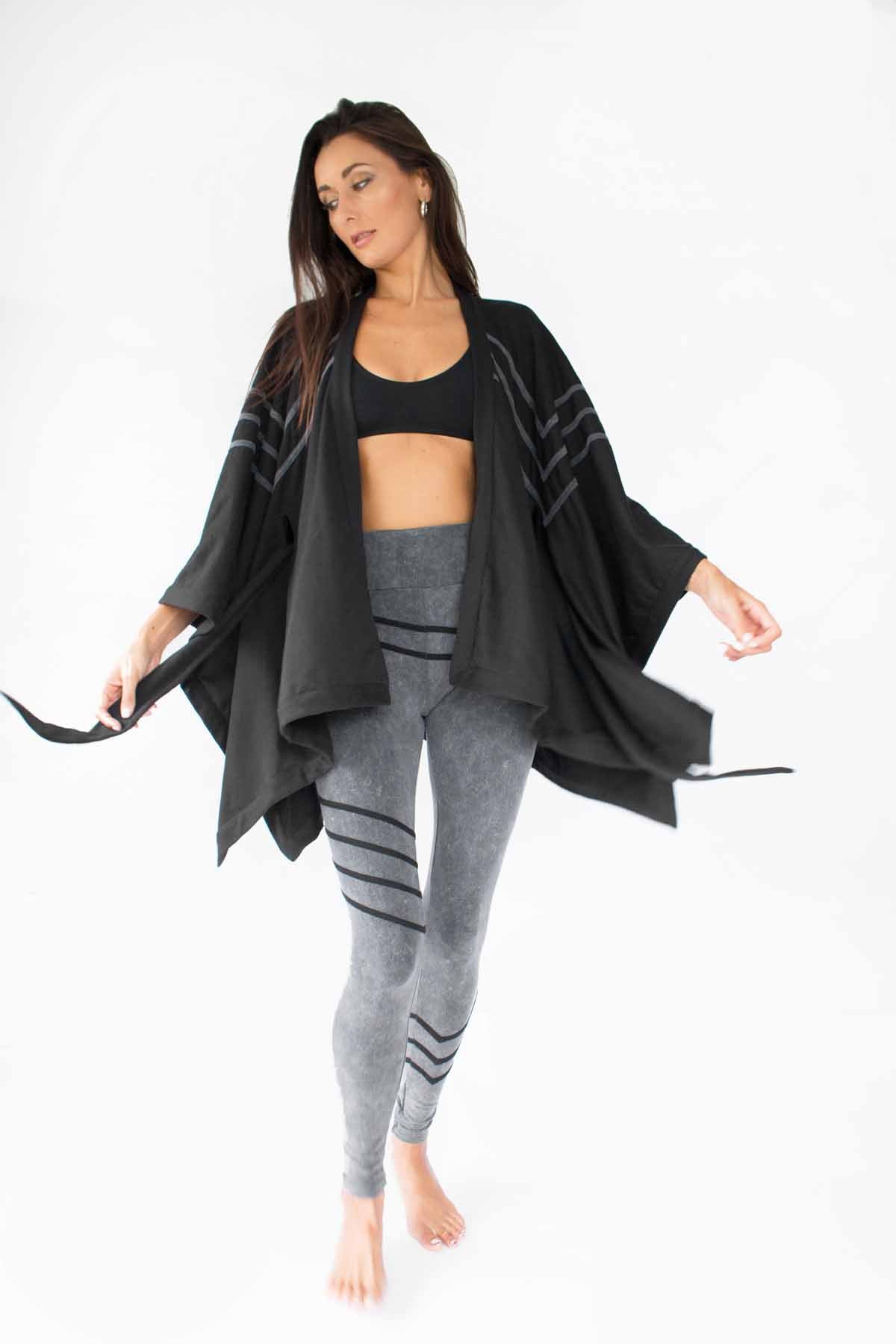 We tried many fabrics on this piece until we found the one with the perfect thickness and drape to be both warm/comfy and beautiful. Wear it open or belted. Chevron details are sewn on the top.