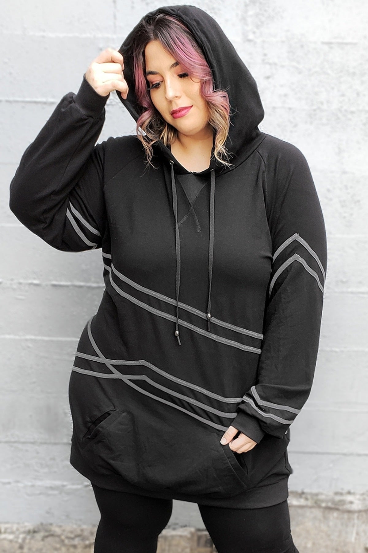 This Oversized Hoody is made from a fine, thick, warm and soft Bamboo Terry. The fabric on this piece shines. Chevron Applique detail is sewn on the top.