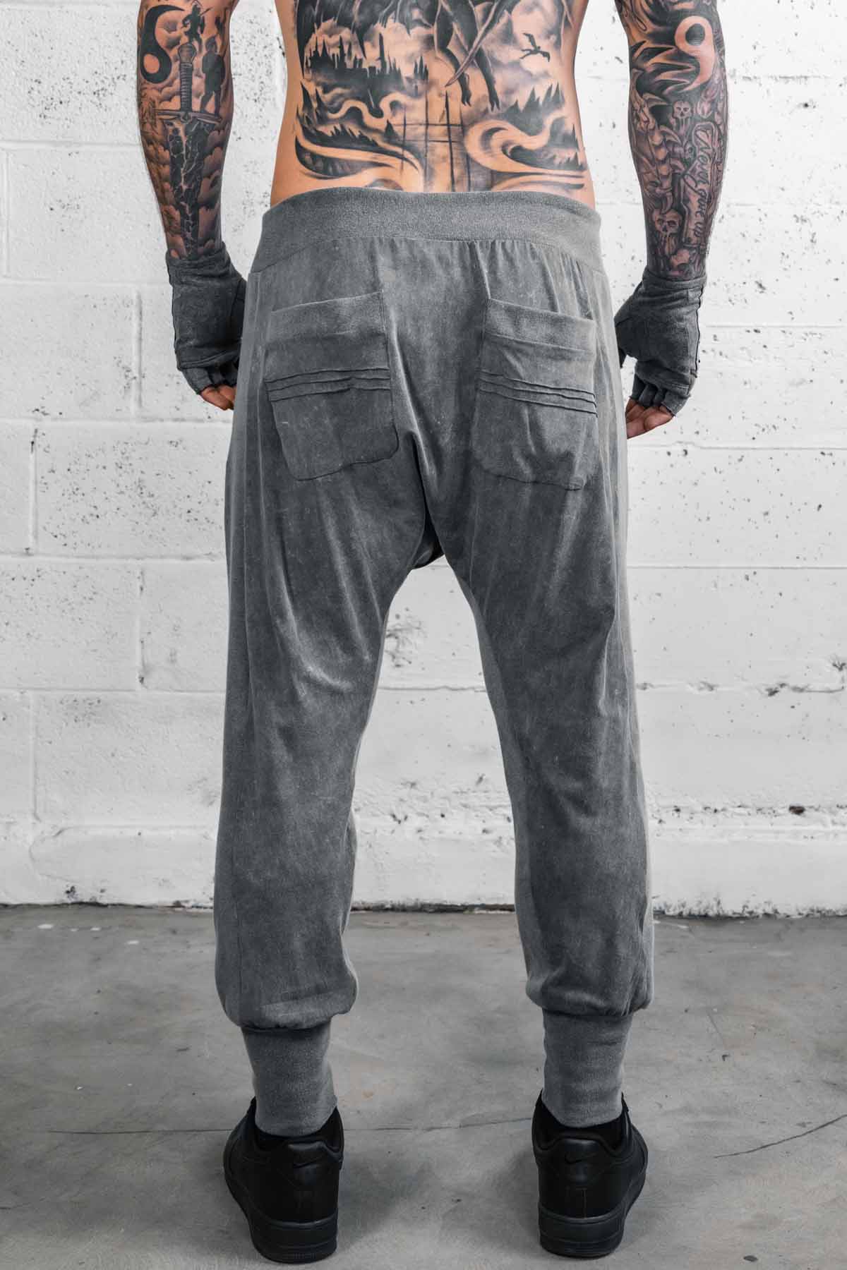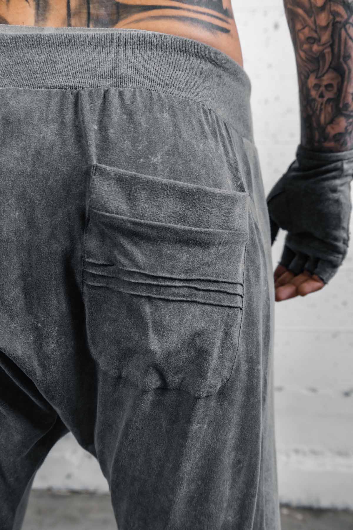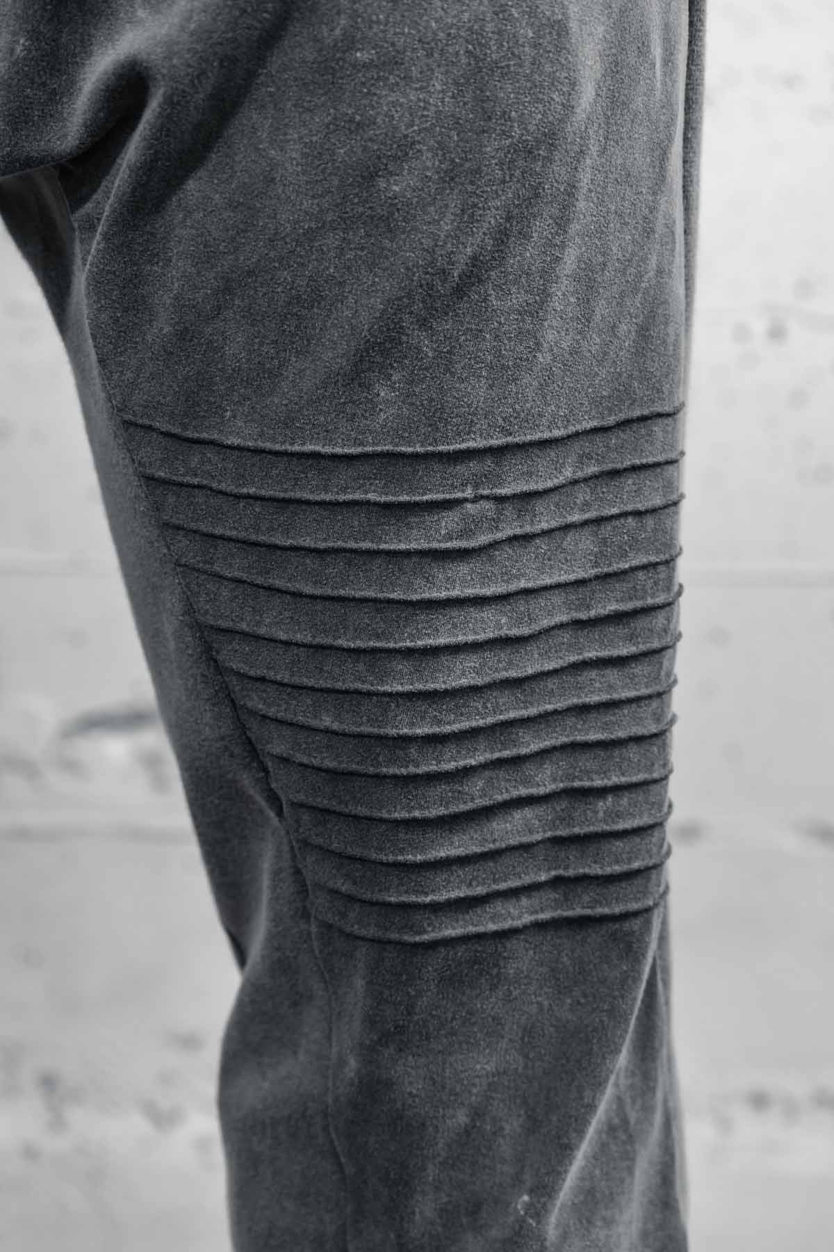 The Diamond Jogger pants are perfect for those looking to be comfortable and stylish on the run. The slight drop crotch, and pintuck knee details give style and mobility. This version is made from a stone washed viscose. In the process the fibers shrink making these thicker than our normal version.