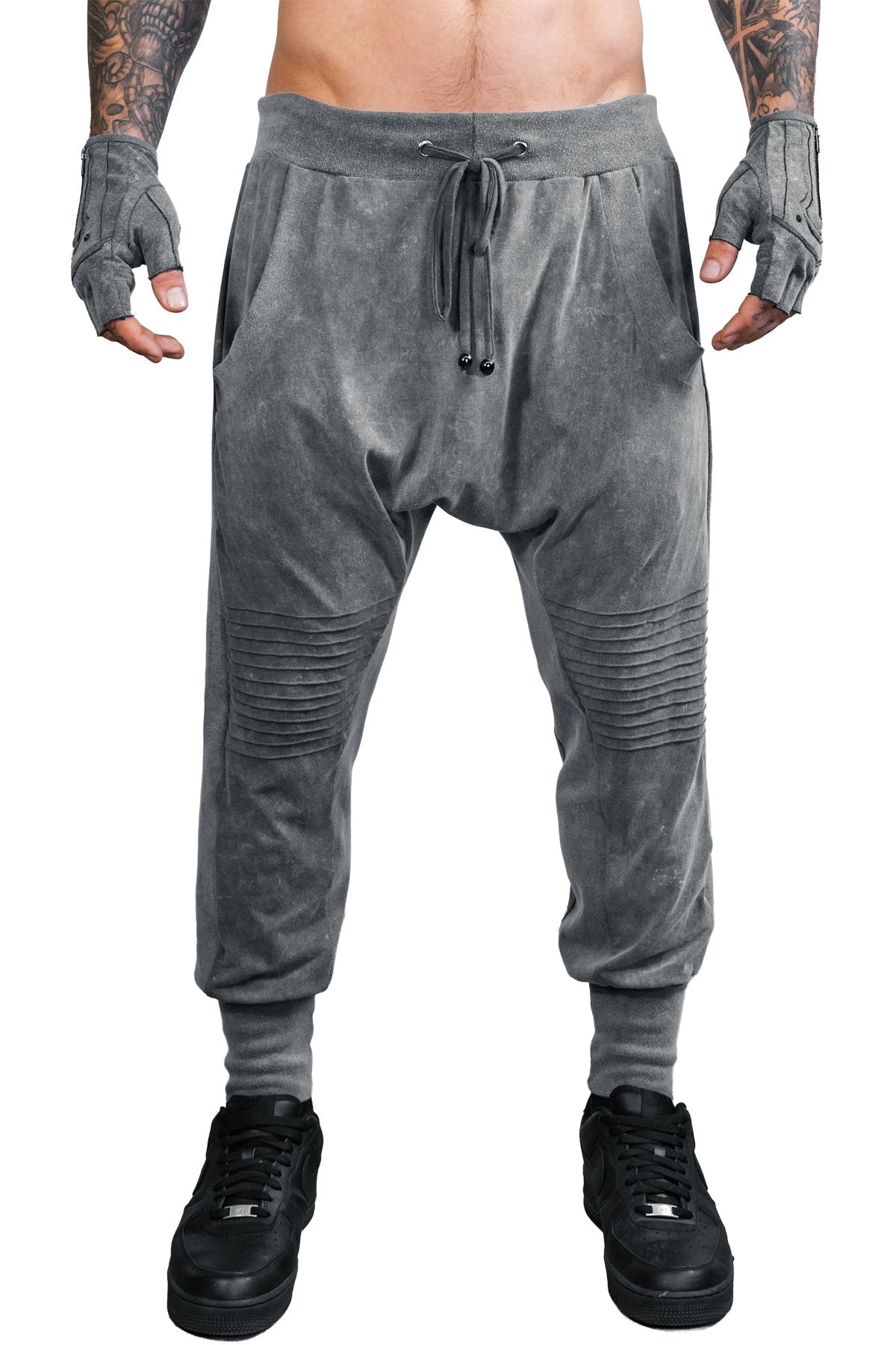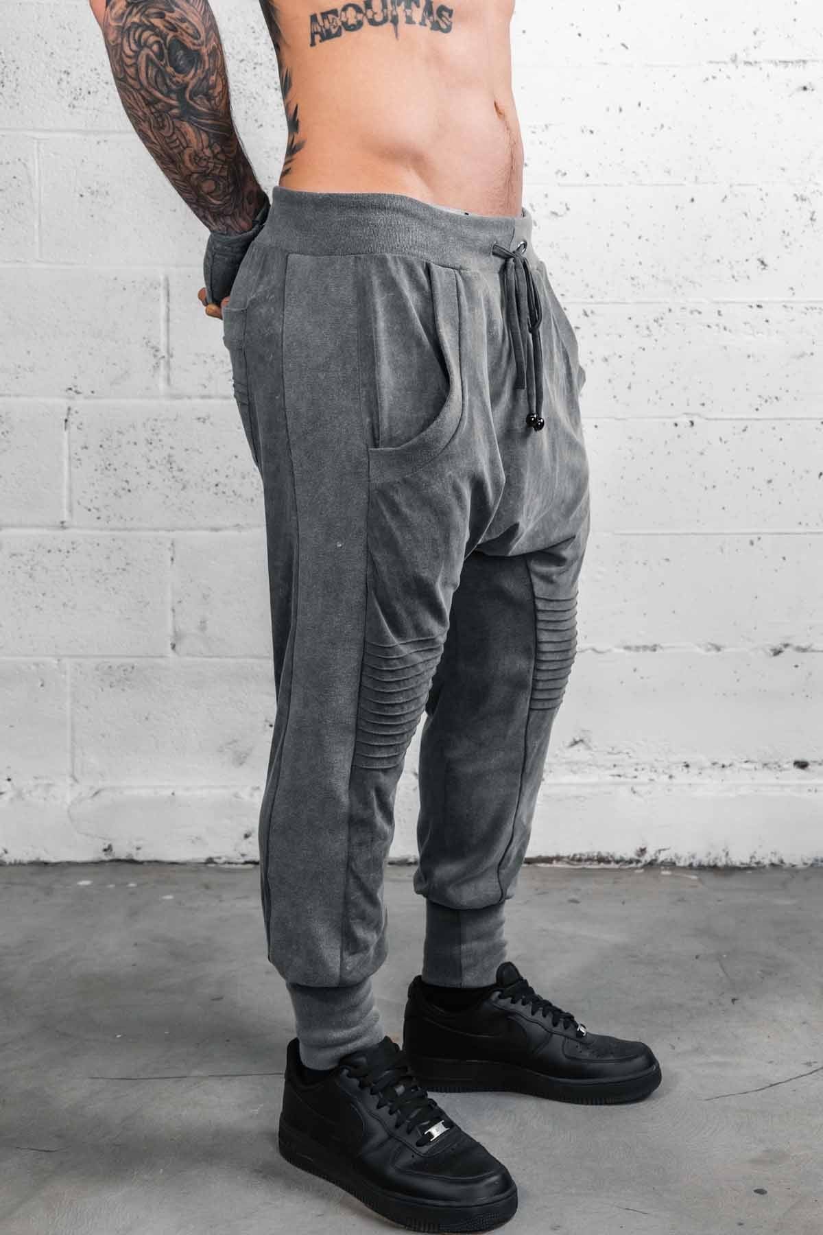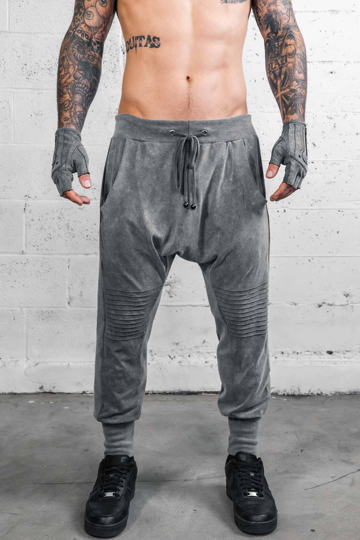 The Diamond Jogger pants are perfect for those looking to be comfortable and stylish on the run. The slight drop crotch, and pintuck knee details give style and mobility. This version is made from a stone washed viscose. In the process the fibers shrink making these thicker than our normal version.